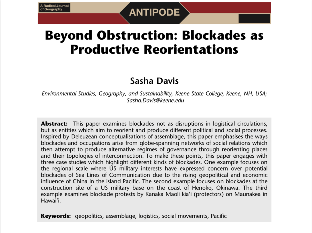 The article “Beyond Obstruction: Blockades as Productive Reorientations“ in Antipode (2023)
